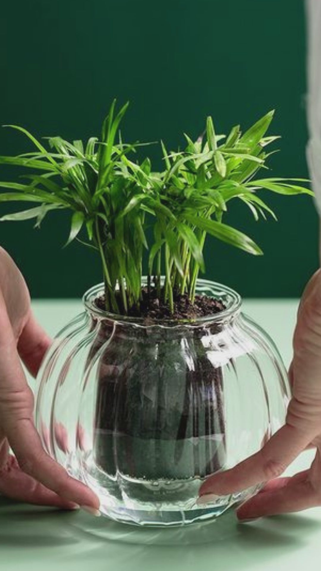 Medium Ribbed Self-watering Glass Pot